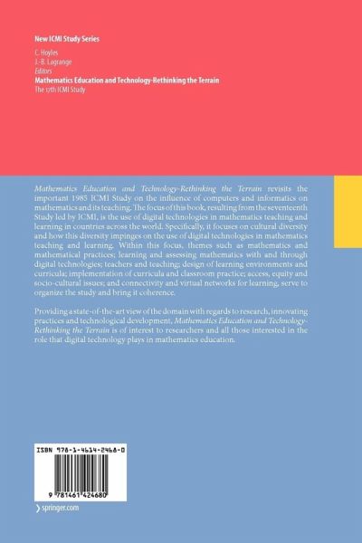 Mathematics Education and Technology-Rethinking the Terrain revisits the important 1985 ICMI Study on the influence of computers and informatics on mathematics and its teaching. The focus of this book, resulting from the seventeenth Study led by ICMI, is the use of digital technologies in mathematics teaching and learning in countries across the world. Specifically, it focuses on cultural diversity and how this diversity impinges on the use of digital technologies in mathematics teaching and learning. Within this focus, themes such as mathematics and mathematical practices; learning and assessing mathematics with and through digital technologies; teachers and teaching; design of learning environments and curricula; implementation of curricula and classroom practice; access, equity and socio-cultural issues; and connectivity and virtual networks for learning, serve to organize the study and bring it coherence.