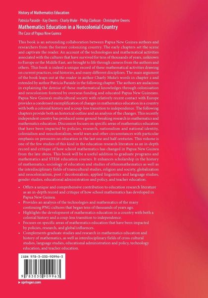 Most education research is undertaken in western developed countries. While some research from developing countries does make it into research journals from time to time, but these articles only emphasize the rarity of research in developing countries. The proposed book is unique in that it will cover education in Papua New Guinea over the millennia. Papua New Guinea's multicultural society with relatively recent contact with Europe and the Middle East provides a cameo of the development of education in a country with both a colonial history and a coup-less transition to independence. Discussion will focus on specific areas of mathematics education that have been impacted by policies, research, circumstances and other influences, with particular emphasis on pressures on education in the last one and half centuries. This volume will be one of the few records of this kind in the education research literature as an in-depth record and critique of how school mathematics has been grown in Papua New Guinea from the late 1800s, and should be a useful addition to graduate programs mathematics education courses, history of mathematics, as well as the interdisciplinary fields of cross cultural studies, scholarship focusing on globalization and post / decolonialism, linguistics, educational administration and policy, technology education, teacher education, and gender studies.