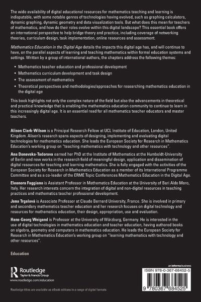 Mathematics Education in the Digital Age details the impacts this digital age has, and will continue to have, on the parallel aspects of learning and teaching mathematics within formal education systems and settings. Written by a group of international authors, the chapters address the following themes: