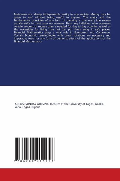Businesses are always indispensable entity in any society. Money may be given to loaf without being useful to anyone. The major and the fundamental principles of any form of banking is that every idle money usually yields in most cases no increase. Thus, any individual who possesses certain amount of money than is needed for day to day activities as well as the necessities for living may not just put them away in safe places. Financial Mathematics plays a vital role in Economics and Commerce. Certain Economic terminologies with usual notations are necessary and imperative tools for any form of demonstrations of the applications of the financial Mathematics.