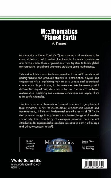 Mathematics of Planet Earth (MPE) was started and continues to be consolidated as a collaboration of mathematical science organisations around the world. These organisations work together to tackle global environmental, social and economic problems using mathematics. This textbook introduces the fundamental topics of MPE to advanced undergraduate and graduate students in mathematics, physics and engineering while explaining their modern usages and operational connections. In particular, it discusses the links between partial differential equations, data assimilation, dynamical systems, mathematical modelling and numerical simulations and applies them to insightful examples. The text also complements advanced courses in geophysical fluid dynamics (GFD) for meteorology, atmospheric science and oceanography. It links the fundamental scientific topics of GFD with their potential usage in applications of climate change and weather variability. The immediacy of examples provides an excellent introduction for experienced researchers interested in learning the scope and primary concepts of MPE.