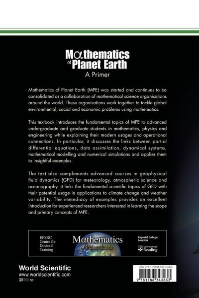 Mathematics of Planet Earth (MPE) was started and continues to be consolidated as a collaboration of mathematical science organisations around the world. These organisations work together to tackle global environmental, social and economic problems using mathematics. This textbook introduces the fundamental topics of MPE to advanced undergraduate and graduate students in mathematics, physics and engineering while explaining their modern usages and operational connections. In particular, it discusses the links between partial differential equations, data assimilation, dynamical systems, mathematical modelling and numerical simulations and applies them to insightful examples. The text also complements advanced courses in geophysical fluid dynamics (GFD) for meteorology, atmospheric science and oceanography. It links the fundamental scientific topics of GFD with their potential usage in applications of climate change and weather variability. The immediacy of examples provides an excellent introduction for experienced researchers interested in learning the scope and primary concepts of MPE.