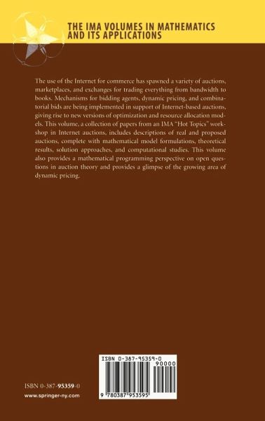 The use of the internet for commerce has spawned a variety of auctions, marketplaces, and exchanges for trading everything from bandwidth to books. Mechanisms for bidding agents, dynamic pricing, and combinatorial bids are being implemented in support of internet-based auctions, giving rise to new versions of optimization and resource allocation models. This volume, a collection of papers from an IMA "Hot Topics" workshop in internet auctions, includes descriptions of real and proposed auctions, complete with mathematical model formulations, theoretical results, solution approaches, and computational studies.