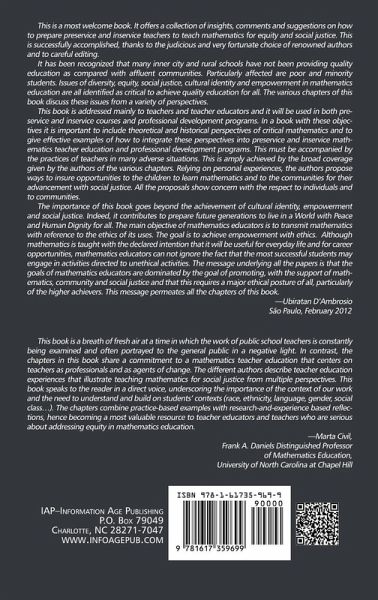 Mathematics teacher education has a critical role to play in preparing teachers to put at center stage goals to support equity in mathematics education and to diversify student interest and participation in mathematics. These goals must also resonate with broader public interest goals to improve educational and social conditions both in the U.S. and abroad. The Mathematics Teacher Education in the Public Interest book aims to support mathematics teacher educators to prepare teachers with new knowledge and skills to support all students to learn mathematics and to become informed, engaged, and critical citizens within their community, nation, and world. While internationally there is considerable interest among mathematics educators in issues of equity and social justice, the literature on mathematics teacher education for equity and social justice thus far has been very limited.The book provides theoretical discussions on the need for equity and social justice emphases in mathematics teacher education, as well as practical examples from mathematics teacher educators, documenting their own professional efforts to center practices on equity and social justice. Section emphases include critical perspectives on mathematics teacher education, the use of equity and social justice-themed activities in mathematics teacher preparation courses, and issues of identity and community and cultural contexts in mathematics teacher education. In addition syntheses of major ideas of the book are offered by experienced researchers.