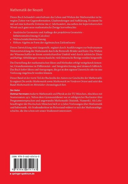 Dieser Band ist der vierte Teil der Buchreihe des Autors zur Geschichte der Mathematik: Er ergänzt "Die antike Mathematik" sowie "Mathematik im Vorderen Orient" und setzt den Band "Mathematik im Mittelalter" chronologisch fort.