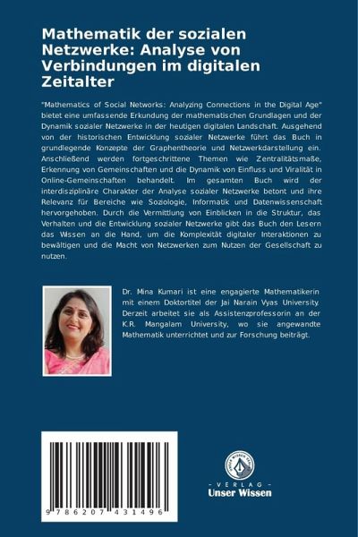 "Mathematics of Social Networks: Analyzing Connections in the Digital Age" bietet eine umfassende Erkundung der mathematischen Grundlagen und der Dynamik sozialer Netzwerke in der heutigen digitalen Landschaft. Ausgehend von der historischen Entwicklung sozialer Netzwerke führt das Buch in grundlegende Konzepte der Graphentheorie und Netzwerkdarstellung ein. Anschließend werden fortgeschrittene Themen wie Zentralitätsmaße, Erkennung von Gemeinschaften und die Dynamik von Einfluss und Viralität in Online-Gemeinschaften behandelt. Im gesamten Buch wird der interdisziplinäre Charakter der Analyse sozialer Netzwerke betont und ihre Relevanz für Bereiche wie Soziologie, Informatik und Datenwissenschaft hervorgehoben. Durch die Vermittlung von Einblicken in die Struktur, das Verhalten und die Entwicklung sozialer Netzwerke gibt das Buch den Lesern das Wissen an die Hand, um die Komplexität digitaler Interaktionen zu bewältigen und die Macht von Netzwerken zum Nutzen der Gesellschaft zunutzen.
