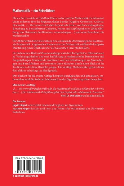 Dieses Buch versteht sich als Reiseführer in das Land der Mathematik. Es informiert unter anderem über die Regionen dieses Landes (Algebra, Geometrie, Analysis, Stochastik, ...), über seine Geschichte, bedeutende Krisen und Entwicklungslinien, Beziehung zu benachbarten Gebieten, Kultur und Gepflogenheiten (Modellbildung, das Phänomen des Beweises, Anwendungen, ...) und seine Bewohner, die Mathematiker.