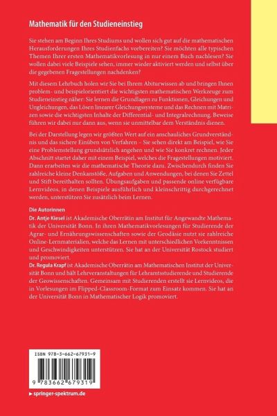 Sie stehen am Beginn Ihres Studiums und wollen sich gut auf die mathematischen Herausforderungen Ihres Studienfachs vorbereiten? Sie möchten alle typischen Themen Ihrer ersten Mathematikvorlesung in nur einem Buch nachlesen? Sie wollen dabei viele Beispiele sehen, immer wieder aktiviert werden und selbst über die gegebenen Fragestellungen nachdenken?