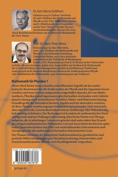 Dieses Buch bietet einen schnellen und effizienten Zugriff auf das mathematische Basiswissen für die Studierenden der Physik und der Ingenieurwissenschaften, und zwar in einer prägnanten, zeitgemäßen Sprache, die von Mathematikern, Physikern und Ingenieuren gleichermaßen verstanden wird. Infinitesimalrechnung einer und mehrerer Variabler, Vektor- und Matrizenrechnung, Grundbegriffe der abstrakten linearen Algebra und der abstrakten Analysis; all diese Themen werden angesprochen und in ausreichender Tiefe behandelt, ohne den Leser/die Leserin durch übertriebene Stoffmenge oder Weitschweifigkeit unnötig zu belasten. Das Buch eignet sich zudem als mathematisches Nachschlagewerk und zur Prüfungsvorbereitung. Eine breite Palette von Übungsaufgaben, die in jahrelanger Lehrpraxis getestet sind, unterstützt den Erwerb der nötigen mathematischen Fähigkeiten. Last not least, bietet das Buch in optionalen Zusatzabschnitten eine Fülle von weiterführenden Informationen und Anregungen für die mathematisch besonders interessierten Leser.
