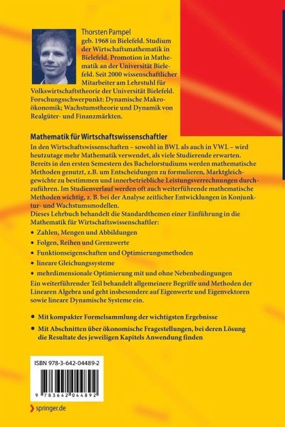Mit einer kompakten Formelsammlung der wichtigsten Ergebnisse Mit Abschnitten über ökonomische Fragestellungen, bei deren Lösung die Resultate des jeweiligen Kapitels Anwendung finden