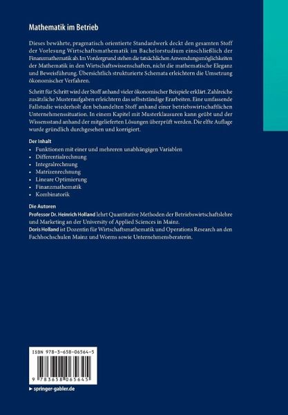 Schritt für Schritt wird der Stoff anhand vieler ökonomischer Beispiele erklärt. Zahlreiche zusätzliche Musteraufgaben erleichtern das selbstständige Erarbeiten. Eine umfassende Fallstudie wiederholt den behandelten Stoff anhand einer betriebswirtschaftlichen Unternehmenssituation. In einem Kapitel mit Musterklausuren kann geübt und der Wissensstand anhand der mitgelieferten Lösungen überprüft werden. Die elfte Auflage wurde gründlich durchgesehen und korrigiert.