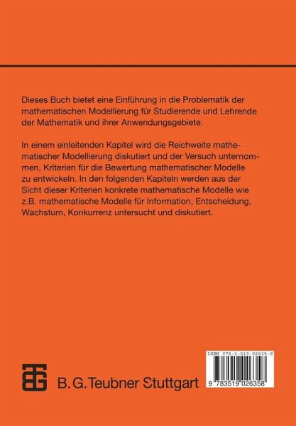 Im landläufigen Mathematikunterricht an Schulen und Hochschulen wird die Mathematik überwiegend als eine geistige Disziplin vermittelt, in der es um die Klarheit und Stringenz des Denkens geht. Systematik und formale Eleganz der Darstellung stehen im Vorder grund. Dabei wird aber ignoriert, daß die Mathematik nicht allein aus sich heraus lebt, sondern in andere Bereiche unserer Kultur eingebunden ist. Ohne allzusehr zu übertreiben, kann man sogar behaupten, daß sie ein integrativer Bestandteil unserer technologischen Welt ist und damit einen Einfluß ausübt, der weit über ihr Selbstverständnis hinausgeht. Mit der Sprache der Mathematik lassen sich auch nicht-mathematische Inhalte, zu mindest bis zu einem gewissen Grade ausdrücken. Man gelangt auf diese Weise oft zu Einsichten, die man ohne die Sprache der Mathematik nicht so klar und präzise aus drücken könnte. Man muß dabei allerdings auch beachten, daß mit der Umsetzung nicht mathematischer Sachverhalte in Mathematik eine starkeVereinfachung einhergeht als Preis für die mathematische Abstraktion. Diese Vereinfachung muß bei der Interpretation der durch Mathematik gewonnenen Einsichten berücksichtigt werden. Der Zweck dieses Buches besteht darin, die soeben skizzierte Rolle der Mathematik ins Bewußtsein der Mathematiker zu bringen. Danken möchte ich Frau A. Garhammer für das Schreiben dieses Buchtextes auf dem Computer und Herrn S. Bott für die Herstellung der Graphiken.