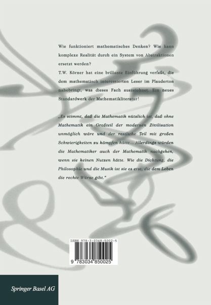 Dieses Buch wendet sich zuallererst an intelligente Schüler ab 14 Jahren sowie an Studienanfänger, die sich für Mathematik interessieren und etwas mehr als die Anfangsgründe dieser Wissenschaft kennenlernen möchten. Es gibt inzwischen mehrere Bücher, die eine ähnliche Zielstellung verfolgen. Besonders gern erinnere ich mich an das Werk Vom Einmaleins zum Integral von Colerus, das ich in meiner Kindheit las. Es beginnt mit der folgenden entschiedenen Feststellung: Die Mathematik ist eine Mausefalle. Wer einmal in dieser Falle gefangen sitzt, findet selten den Ausgang, der zurück in seinen vormathematischen Seelenzustand leitet. ([49], S. 7) Einige dieser Bücher sind im Anhang zusammengestellt und kommen tiert. Tatsächlich ist das Unternehmen aber so lohnenswert und die Anzahl der schon vorhandenen Bücher doch so begrenzt, daß ich mich nicht scheue, ihnen ein weiteres hinzuzufügen. An zahlreichen amerikanischen Universitäten gibt es Vorlesungen, die gemeinhin oder auch offiziell als ,,Mathematik für Schöngeister'' firmieren. Dieser Kategorie ist das vorliegende Buch nicht zuzuordnen. Statt dessen soll es sich um eine ,,Mathematik für Mathematiker'' handeln, für Mathema tiker freilich, die noch sehr wenig von der Mathematik verstehen. Weshalb aber sollte nicht der eine oder andere von ihnen eines Tages den Autor dieses 1 Buches durch seine Vorlesungen in Staunen versetzen? Ich hoffe, daß auch meine Mathematikerkollegen Freude an dem Werk haben werden, und ich würde mir wünschen, daß auch andere Leser, bei denen die Wertschätzung für die Mathematik stärker als die Furcht vor ihr ist, Gefallen an ihm finden mögen.