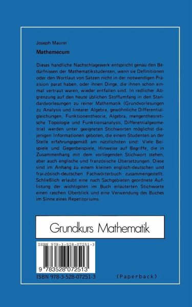 Dieses Buch ist entstanden unter Erinnerungen an die Zeit des eigenen Mathematik studiums, und unter dem Eindruck der Betreuung und Ausbildung von Mathematik studenten heute. Beides hatte zu dem Wunsch gefiihrt, über ein kleines handliches Nachschlagewerk zu verrugen, wenn der Student feststellen muß, daß er Defmitio nen oder den Wortlaut von Sätzen nicht in der notwendigen Präzision behalten hat, oder daß ihm Dinge, die ihm vor wenigen Monaten noch vertraut waren, schon wieder entfallen sind. Man braucht dann kein Lehrbuch und keinen straffen tlbersichtsartikel über die Theorie, denn darin ist die Stelle, an der es hakt, oft schwer zu finden und meist so in einen logischen Aufbau eingerugt, daß es vor allem den jüngeren Studenten schwerfällt, die richtige Auskunft herauszuziehen. Auch allgemeine mathematische Wörterbücher sind oft enttäuschend: Sie wollen es jedem rechtmachen, wenden sich an einen allzu großen Benutzerkreis und behandeln zu viele verschiedene Stoffge biete; so sind sie schließlich entweder zu umfangreich, oder die Stichwortartikel sind notwendigerweise zu knapp rur die Bedürfnisse des Fragenden. Man braucht stattdessen ein Büchlein, das in redlicher Abgrenzung auf den heute üblichen Stoff umfang in den Standardvorlesungen zu reiner Mathematik (und unbe eindruckt von enzyklopädischen Absichten oder besonderen mathematischen Ambi tionen) möglichst diejenigen Informationen unter geeigneten Stichwörtern zusam menfaßt, die einem Studenten an der Stelle erfahrungsgemäß am nützlichsten sind.