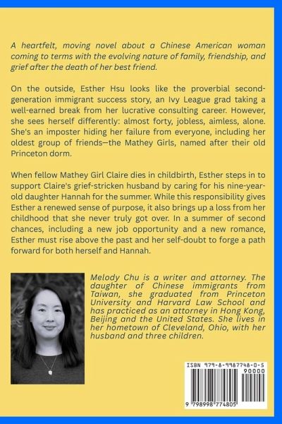 A heartfelt, moving novel about a Chinese American woman coming to terms with the evolving nature of family, friendship, and grief after the loss of her best friend. On the outside, Esther Hsu looks like the proverbial second-generation immigrant success story, an Ivy League grad taking a well-earned break from her lucrative consulting career. However, she sees herself differently: almost forty, jobless, aimless, alone. She's an imposter hiding her failure from everyone, including her oldest group of friends-the Mathey Girls, named after their old Princeton dorm. When fellow Mathey Girl Claire dies in childbirth, Esther steps in to support Claire's grief-stricken husband by caring for his nine-year-old daughter Hannah for the summer. While this responsibility gives Esther a renewed sense of purpose, it also brings up a loss from her childhood that she never truly got over. In a summer of second chances, including a new job opportunity and a new romance, Esther must rise above the past and her self-doubt to forge a path forward for both herself and Hannah. Editorial Reviews "Well-developed female characters who are hopeful and empathetic are the beating heart of this novel. Esther is proof that what might look like failure is actually an opportunity to help someone else, and, as she transforms her grief and insecurities into supporting others, her narrative arc undergoes a stunning evolution as well, depicting a lovely model of camaraderie that inspires." -- The BookLife Prize "...an uplifting exploration of friendships and life possibilities that will lend especially well to book club recommendation and discussions... Filled with eye-opening reflections and moments of realization and growth, Mathey Girls is an unforgettable story filled with poignant revelations and cross-cultural inspections." -- D. Donovan, Senior Reviewer, Midwest Book Review