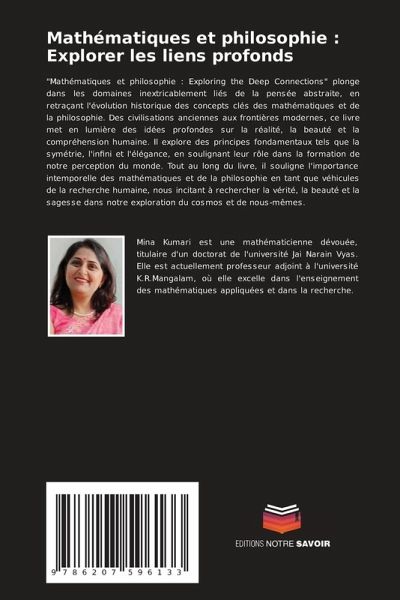 "Mathématiques et philosophie : Exploring the Deep Connections" plonge dans les domaines inextricablement liés de la pensée abstraite, en retraçant l'évolution historique des concepts clés des mathématiques et de la philosophie. Des civilisations anciennes aux frontières modernes, ce livre met en lumière des idées profondes sur la réalité, la beauté et la compréhension humaine. Il explore des principes fondamentaux tels que la symétrie, l'infini et l'élégance, en soulignant leur rôle dans la formation de notre perception du monde. Tout au long du livre, il souligne l'importance intemporelle des mathématiques et de la philosophie en tant que véhicules de la recherche humaine, nous incitant à rechercher la vérité, la beauté et la sagesse dans notre exploration du cosmos et de nous-mêmes.