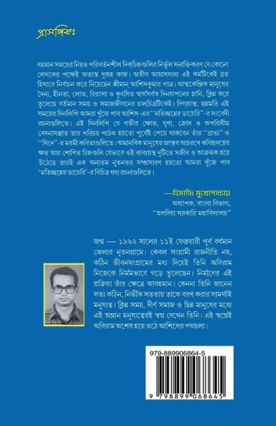 Identifying the ever-changing markers of a constantly flowing time is an immensely difficult task for any writer. Yet, Shri Ashis Kumar Patra has chosen this arduous pursuit as his life's mission. The degradation of self-centered human beings-their pettiness, greed, lust, and repugnant self-serving existence-has tainted the very canvas of our contemporary time and social life. The disoriented, chaotic nature of this era finds a powerful echo in the sensitive prose pieces of Ashis's "Matichchhanner Diary." This diary, born of deep resentment, loathing, anger, and overwhelming sorrow, might already be familiar to readers who have experienced the poignant poetry in his earlier works "Bratya" and "Khidhe." The wounds and bloodstains on the poet's heart, inflicted by the inhuman and beastly behavior of mankind, came alive in those poetry collections with striking immediacy and intensity. "Matichchhanner Diary" perhaps marks a new and compelling extension of that same emotional landscape-this time through a series of diverse and evocative prose writings.