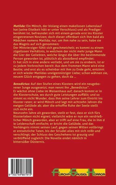 Der Kenner des Genres wird gewiss erraten, dass es sich bei den vorliegenden Erzählungen um je ein Remake eines Gruselklassikers handelt, nämlich des berühmten "The Monk" von M.G. Lewis sowie des weitgehend unbekannten "The Monk and the Hangmans Doughter" von Ambrose Bierce, also um durchaus verwandte Themen; der erstere der beiden gilt als Höhepunkt der gothic novel: Die sogenannte "gotische Flamme" (gothic flame) loderte einst hell über England und über England hinaus; das große Gemeinsame war und ist das Unheimliche, das Übernatürliche; Gespenster und Geister der Hölle treten leibhaftig auf, als ob das ihre wahre Natur wäre; es geht allenthalben nicht mit natürlichen Dingen zu und ist überhaupt nicht erforderlich, logische Gründe für das Übernatürliche vorzubringen.