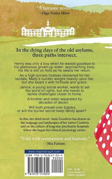 In the dying days of the old asylums, three paths intersect. Henry was only a boy when he waved goodbye to his glamorous grown-up sister; approaching sixty, his life is still on hold as he awaits her return. As a high-society hostess renowned for her recitals, Matty's burden weighs heavily upon her, but she bears it with fortitude and grace. Janice, a young social worker, wants to set the world to rights, but she needs to tackle challenges closer to home. A brother and sister separated by decades of deceit. Will truth prevail over bigotry, or will the buried secret keep family apart? ¿In this, her third novel, Anne Goodwin has drawn on the language and landscapes of her native Cumbria and on the culture of long-stay psychiatric hospitals where she began her clinical psychology career.