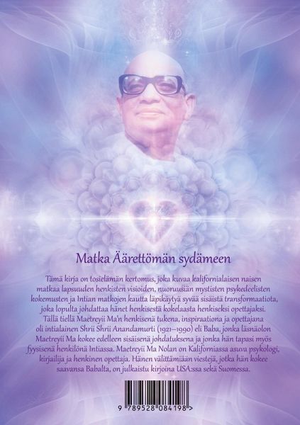 Tämä kirja on tosielämän kertomus, joka kuvaa kalifornialaisen naisen matkaa lapsuuden henkisten visioiden, nuoruusiän mystisten psykedeelisten kokemusten ja Intian matkojen kautta läpikäytyä syvää sisäistä transformaatiota, joka lopulta johdattaa hänet henkisestä kokelaasta henkiseksi opettajaksi. Tällä tiellä Maetreyii Ma Nolanin henkisenä tukena, inspiraationa ja opettajana oli intialainen Shrii Shrii Anandamurti eli Baba, jonka hän tapasi myös fyysisenä henkilönä Intiassa ja jonka läsnäolon Maetreyii Ma kokee edelleen sisäisenä johdatuksena. Maetreyii Ma Nolan on Kaliforniassa asuva psykologi, kirjailija ja henkinen opettaja. Hänen välittämiään viestejä, jotka hän kokee saavansa Babalta, on julkaistu kirjoina USA:ssa. Alkuperäinen kirja on kaksinkertainen Gold Medal Winner USA:ssa vuoden 2024 parhaana omaelämäkertana; toisen antoi Coalition of Visionary Awards ja toisen Global Book Awards. Kirja löytyy Amazonista. Ote Calidris kustantamon käsikirjoitusryhmän lausunnosta: Matka Äärettömän sydämeen on syvällinen ja inspiroiva teos, joka vie lukijansa Maetreyii Ma Nolanin henkilökohtaiselle matkalle kohti korkeampaa tietoisuutta ja henkistä ymmärrystä. Kirja käsittelee universaaleja teemoja, kuten elämän tarkoituksen etsimistä, henkistä kasvua ja yhteyttä gurun opetuksiin. Nolanin kertomus on tunteikas ja elävä, ja suomennos säilyttää alkuperäisteoksen keskeiset elementit tarjoten suomalaiselle lukijakunnalle helposti lähestyttävän mutta syvällisen lukuelämyksen. Teoksen rakenne ja kirjoitustyyli tekevät siitä vetovoimaisen sekä henkisyyttä vasta tutkiville että kokeneemmille etsijöille. Vaikka kirja saattaa tuntua abstraktilta tai raskaalta niille, jotka eivät ole perehtyneet aiheeseen, se tarjoaa inspiroivia näkökulmia ja avaa polun itseymmärrykseen. Matka Äärettömän sydämeen on erinomainen lisä suomalaiselle henkisen kirjallisuuden kentälle.