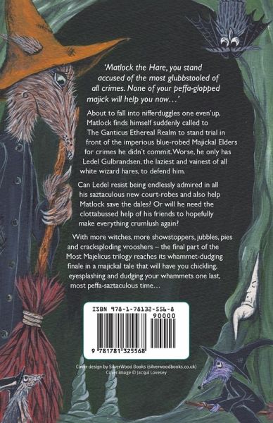 Matlock the Hare, you stand accused of the most glubbstooled of all crimes. None of your majick will help you now… One even'up, Matlock finds himself suddenly called to The Ganticus Ethereal Realm to stand trial in front of the imperious blue-robed Majickal Elders for crimes he didn't commit. Worse, he only has Ledel Gulbrandsen, the laziest and vainest of all white wizard hares, to defend him. Can Ledel resist being endlessly admired in his saztaculous court-robes to help Matlock save the dales? Or will he need the clottabussed help of his friends to make everything crumlush again? With more witches, more showstoppers, pies and cracksploding vrooshers - the final part of the Most Majelicus trilogy reaches its whammet-dudging conclusion in a tale that will have you chickling, eyesplashing and dudging your whammets one final, saztaculous time…