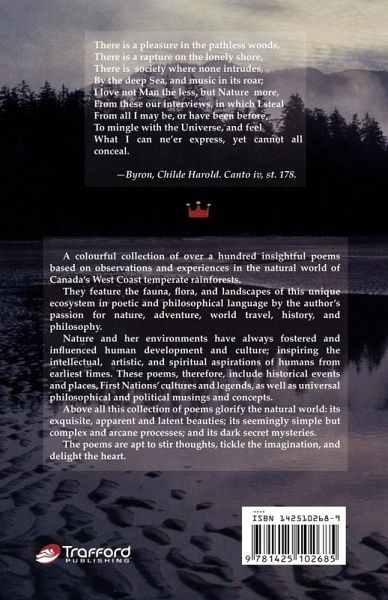 Nature, the grand Matriach, graces the wilderness rainforests of Canada's West Coast-- resplendent with history, wild dramas, and exquisite jewels of our planet-- and is here glimpsed by poetic device.