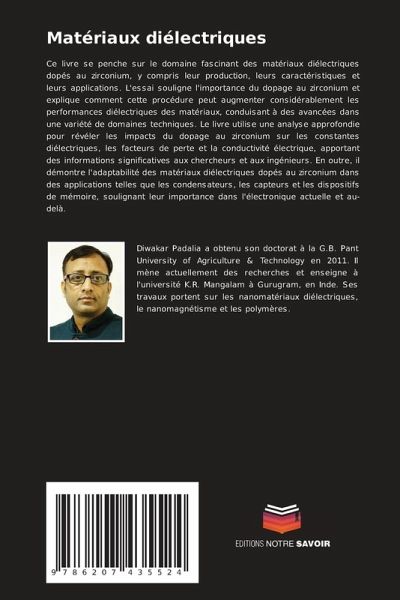Ce livre se penche sur le domaine fascinant des matériaux diélectriques dopés au zirconium, y compris leur production, leurs caractéristiques et leurs applications. L'essai souligne l'importance du dopage au zirconium et explique comment cette procédure peut augmenter considérablement les performances diélectriques des matériaux, conduisant à des avancées dans une variété de domaines techniques. Le livre utilise une analyse approfondie pour révéler les impacts du dopage au zirconium sur les constantes diélectriques, les facteurs de perte et la conductivité électrique, apportant des informations significatives aux chercheurs et aux ingénieurs. En outre, il démontre l'adaptabilité des matériaux diélectriques dopés au zirconium dans des applications telles que les condensateurs, les capteurs et les dispositifs de mémoire, soulignant leur importance dans l'électronique actuelle et au-delà.