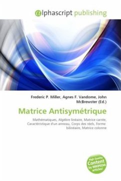 High Quality Content by WIKIPEDIA articles! En mathématiques, et plus précisément en algèbre linéaire, une matrice antisymétrique est une matrice carrée opposée à sa transposée. Une matrice carrée A à coefficients dans un anneau quelconque est dite antisymétrique si sa transposée est égale à son opposée ; c'est-à-dire si elle satisfait à l'équation : tA = -A ou encore, en l'écrivant avec des coefficients sous la forme A = (ai,j), si : pour tout i et j, ai,j = - aj,i