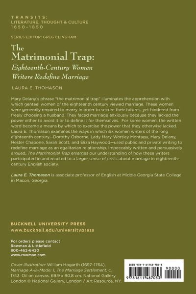 The Matrimonial Trap examines the ways in which six women writers of the long eighteenth century used public and private writing to redefine marriage as an egalitarian relationship. Their writing reveals their participation in and reactions to a larger sense of crisis about marriage in eighteenth-century society.