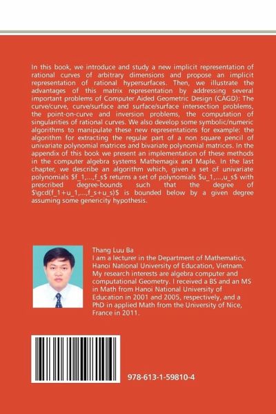 In this book, we introduce and study a new implicit representation of rational curves of arbitrary dimensions and propose an implicit representation of rational hypersurfaces. Then, we illustrate the advantages of this matrix representation by addressing several important problems of Computer Aided Geometric Design (CAGD): The curve/curve, curve/surface and surface/surface intersection problems, the point-on-curve and inversion problems, the computation of singularities of rational curves. We also develop some symbolic/numeric algorithms to manipulate these new representations for example: the algorithm for extracting the regular part of a non square pencil of univariate polynomial matrices and bivariate polynomial matrices. In the appendix of this book we present an implementation of these methods in the computer algebra systems Mathemagix and Maple. In the last chapter, we describe an algorithm which, given a set of univariate polynomials $f_1,...,f_s$ returns a set of polynomials $u_1,...,u_s$ with prescribed degree-bounds such that the degree of $\gcd(f_1+u_1,...,f_s+u_s)$ is bounded below by a given degree assuming some genericity hypothesis.