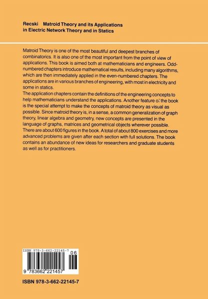 I. The topics of this book The concept of a matroid has been known for more than five decades. Whitney (1935) introduced it as a common generalization of graphs and matrices. In the last two decades, it has become clear how important the concept is, for the following reasons: (1) Combinatorics (or discrete mathematics) was considered by many to be a collection of interesting, sometimes deep, but mostly unrelated ideas. However, like other branches of mathematics, combinatorics also encompasses some gen eral tools that can be learned and then applied, to various problems. Matroid theory is one of these tools. (2) Within combinatorics, the relative importance of algorithms has in creased with the spread of computers. Classical analysis did not even consider problems where "only" a finite number of cases were to be studied. Now such problems are not only considered, but their complexity is often analyzed in con siderable detail. Some questions of this type (for example, the determination of when the so called "greedy" algorithm is optimal) cannot even be answered without matroidal tools.