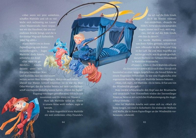 Eigentlich wollten Mats Piep und Mathilde Vogelscheuch geruhsam auf Reisen gehen. Doch als sie erfahren, dass Mats' Familie spurlos verschwunden ist, müssen sie alles riskieren, um sie wiederzufinden. Ihre Suche führt sie erneut in fantastische Welten: Sie setzen sich den Gefahren einer launischen Wasserstraße aus. Sausen mit einem fliegenden Dorf durch die Wolken. Werden von einer hungrigen Hütte verschluckt und kämpfen sich mit König Maroni und seiner gerösteten Garde durch das Land Wiesengrund. Gemeinsam bestehen Mats und Mathilde die größten Abenteuer wie es nur beste Freunde schaffen - bis zum unvergesslichen Schluss.