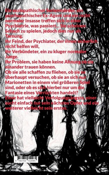 Ein soziopathischer Serienmörder, ein psychopathischer Ex-Agent und ein recht normaler Insasse treffen sich in einer Psychiatrie, was passiert... Sie scheinen Schach zu spielen, jedoch dies nur als Tarnung. Ihr Feind, der Psychiater, der ihnen sicherlich nicht helfen will, Ihr Verbündeter, ein zu kluger normaler Junge.Ihr Problem, sie haben keine Ahnung ob sie einander trauen können.Ob sie alle schaffen zu fliehen, ob sie es überhaupt versuchen, ob sie an sich nur Marionetten in einem viel größeren Spiel sind, oder ob es sich hierbei nur um die Fantasie eines Verrückten handelt?Einer hat vielleicht Verfolgungsängste, einer sucht einfach nur sein nächstes Opfer und ein weiterer vielleicht sein erstes.