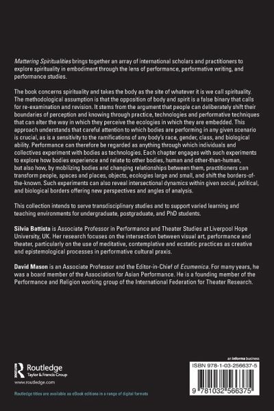 Mattering Spiritualities brings together an array of international scholars and practitioners to explore spirituality in embodiment through the lens of performance, performative writing, and performance studies.