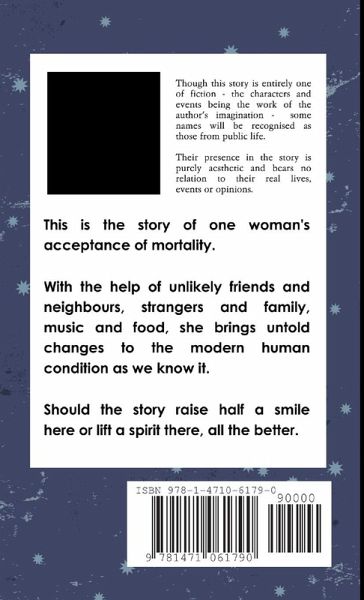 This is a story about one woman's acceptance of mortality. Her meetings with unlikely friends and neighbours bring about an unexpected change to the human condition. Music, food, love, birth and death are placed under the microscope of mismatched meetings - the result of which takes the delegates on journeys as yet untravelled.