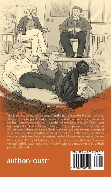 This is a book of 93 poems that come from the heart of one who lived and loved life. The poems run the gamut of subject matter, from deadly serious to utterly whimsical and humorous, even nonsensical. The reader will experience poetically, what it meant to grow up in the 50's and 60's as seen through eyes, aspirations, hopes and dreams of a southern Indiana boy. Most of the poems are written in groups of 4-line verses and attempt to rhyme at the end of the lines. In other words, they share a close similarity to music lyrics. Sometimes, readers will experience sentence structure that reads like Old English but that is one of the hidden gems of the book. Either way, you can't help but experience love, joy and wonder in a unique way as it is penned by this author.