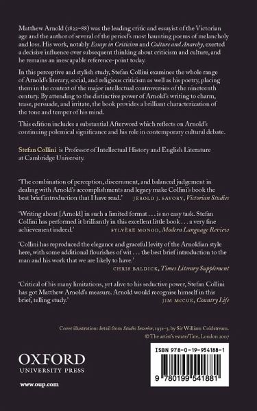 Matthew Arnold (1822-88), the leading man-of-letters of the Victorian age, has been the decisive influence on modern thinking about literature and criticism and his work has become an inescapable cultural reference point today. In this stylish and entertaining book Stefan Collini examines the whole range of Arnold's literary, social, and religious criticism as well as his poetry, placing them in the context of the major intellectual controversies of the nineteenth century. By attending to the distinctive power of Arnold's writing to charm, tease, persuade, and irritate, the book provides a brilliant characterization of the tone and temper of his mind. This edition includes a substantial Afterword which reflects on Arnold's continuing polemical significance and his role in contemporary cultural debate.