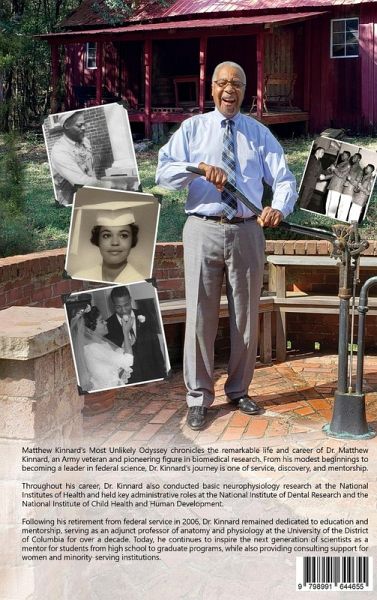 Matthew Kinnard's Most Unlikely Odyssey chronicles the remarkable life and career of Dr. Matthew Kinnard, an Army veteran and pioneering figure in biomedical research. From his modest beginnings to becoming a leader in federal science, Dr. Kinnard's journey is one of service, discovery, and mentorship. Dr. Kinnard served in the U.S. Army from 1959 to 1962 at the Walter Reed Army Institute of Research, where he conducted groundbreaking research on insect-borne viruses. After his military service, he embarked on a 43-year career in the federal government, making significant contributions to science and public health. As chief of field operations for the VA Medical Research Service (now the VA Office of Research and Development) from 1979 to 1985, he oversaw biomedical research across the Veterans Affairs system. Throughout his career, Dr. Kinnard also conducted basic neurophysiology research at the National Institutes of Health and held key administrative roles at the National Institute of Dental Research and the National Institute of Child Health and Human Development. Following his retirement from federal service in 2006, Dr. Kinnard remained dedicated to education and mentorship, serving as an adjunct professor of anatomy and physiology at the University of the District of Columbia for over a decade. Today, he continues to inspire the next generation of scientists as a mentor for students from high school to graduate programs, while also providing consulting support for women and minority-serving institutions. I have titled my story Matthew Kinnard's Most Unlikely Odyssey because, in my opinion, based on my humble beginnings, the odds of reaching this relatively lofty perch were highly unlikely. However, there are four key elements/factors that I can point to with certainty that are important to my success, and they are not necessarily listed in the order of their importance. First, I believe that I was blessed with a better than average intellect and a doggedde termination to succeed.Second, I was endowed with an insatiable curiosity. Third, I have stood, and continue to stand, on the shoulders of giants, both living and dead, whom I respect and have tried to emulate. Fourth, I am the beneficiary of an incredible supporting cast, both literally and figuratively-primarily my wife, Regina, my daughters, Mary and Lisa, and a cheerleading cadre of friends and associates that is second to none. The combination of these four elements, in my opinion,have been of paramount importance to my ascent from obscurityto relative success over the past 86 years.