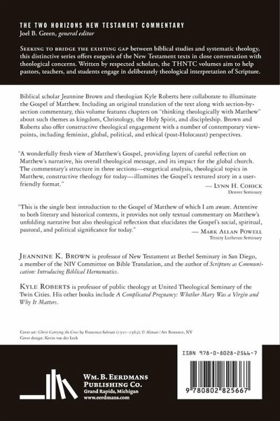 In this latest addition to the Two Horizons New Testament Commentary series, biblical scholar Jeannine Brown and theologian Kyle Roberts together illuminate the Gospel of Matthew for pastors, scholars, and serious students of Scripture. Including an original translation of the text along with section-by-section commentary, this volume features chapters on "thinking theologically with Matthew" about such themes as kingdom, Christology, the Holy Spirit, and discipleship. Brown and Roberts also offer constructive theological engagement with a number of contemporary viewpoints, including feminist, global, political, and ethical (post-Holocaust) perspectives. At once interdisciplinary and insightful, their commentary will appeal to a wide readership.