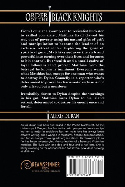 Order of the Black Knights From Louisiana swamp rat to revivalist huckster to skilled con artist, Matthias Krall clawed his way out of poverty using his natural gifts of grift and manipulation to become the leader of an exclusive retreat center. Exploiting the guise of spiritual guru, Matthias seduces the rich and powerful into turning over their lives and fortunes to his control. But wealth and a small cadre of loyal followers can't protect Matthias from the betrayal he knows is imminent. Everyone wants what Matthias has, except for one man who wants to destroy it. Dylan Connelly is a reporter who's determined to prove the charismatic recluse is not only a fraud but a murderer. Irresistibly drawn to Dylan despite the warnings in his gut, Matthias lures Dylan to his island retreat, determined to destroy his enemy once and for all.