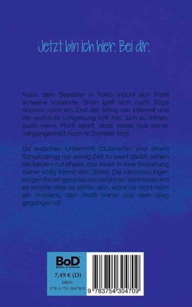 ___2. vollständig überarbeitete Neuauflage von März 2022___Nach dem Desaster in Tokio macht sich Matti schwere Vorwürfe. Brian igelt sich auch Tage danach noch ein. Erst der Alltag am Internat und die vertraute Umgebung hilft ihm, sich zu öffnen, auch wenn Matti spürt, dass vieles aus seiner Vergangenheit noch im Dunkeln liegt.Da zwischen Unterricht, Clubtreffen und einem Schulausflug nur wenig Zeit zu zweit bleibt, setzen die beiden auf etwas, das ihnen in ihrer Beziehung bisher völlig fremd war: Dates. Die Verabredungen sorgen für ein ganz neues Gefühl der Vorfreude und es könnte alles so schön sein, wäre da nicht noch ein Problem, dem Matti bisher aus dem Weg gegangen ist.Content Notes:(Diese befindet sich ausfürhlicher auf den ersten Seiten des Buchs)HomophobieHäusliche Gewalt gegnüber Kindern und Jugendlichen
