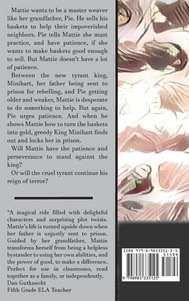Mattie wants to be a master weaver like her grandfather, Pie. He makes exquisite baskets to sell and earn money to help their village. He tells Mattie she must practice and have patience. But that is one thing Mattie doesn't have a lot of. The new king is a tyrant and rules the kingdom with cruelty and greed. Mattie's father ends up in prison when he rebels against King Minihart. Mattie wants to rescue her father, but again, Pie urges patience. Finally, Pie is ready to trust Mattie with the secret of where he sells the baskets for silver. On the journey, bandits try to steal from them, but Pie is prepared. He has a magic flute! Mattie gains even more respect for her talented grandfather. They then devise a plan to visit Mattie's father at the mine where Minihart sends dissenters to work until they are too weak to protest. They find that Mattie's father, Marcus, has been working to build resistance from within the prison mine and wants to help his fellow prisoners get better living conditions. Pie and Mattie return home where Mattie continues working on her basket-making skills. But Pie is growing older and weaker by the day. He tries to prepare his granddaughter to take his place in helping the family and the villagers. Before her grandfather dies, he shows Mattie how to turn the baskets into gold to help out the village. But greedy King Minihart finds out and locks Mattie in prison. Finally with patience and perseverance, and a bit of help from her friends, Mattie escapes. Pie's spirit, and his magic flute, go with her, reassuring her that she can foil the evil plans of King Minihart.