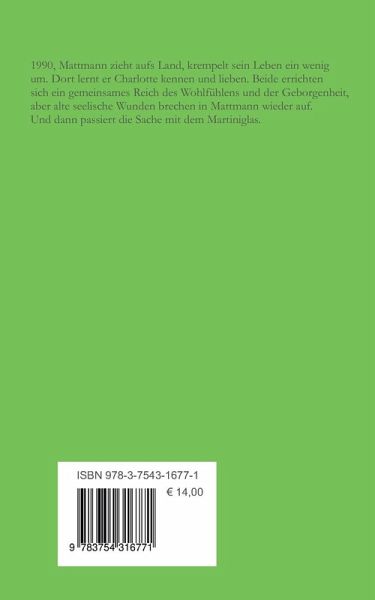 1990, Mattmann zieht aufs Land, krempelt sein Leben ein wenig um. Dort lernt er Charlotte kennen und lieben. Beide errichten sich eine gemeinsames Reich des Wohlfühlens und der Geborgenheit, aber alte seelische Wunden brechen in Mattmann wieder auf. Und dann passiert die Sache mit dem Martiniglas.