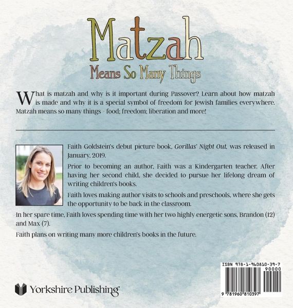 What is matzah and why is it important during Passover? Learn about how matzah is made and why it is a special symbol of freedom for Jewish families everywhere. Included: Recipes, educational materials for teachers and families. Children and parents will love the beautiful message and illustrations. Matzah means so many things - food; freedom; liberation and more!