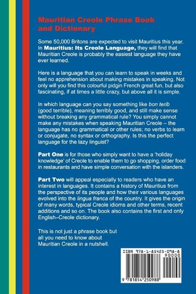 Revealing the language?s delightfully simple rules, this detailed reference makes it a breeze for tourists, businessmen, and linguists to learn and speak Mauritian Creole. A pidgin French 300 years in the making and the country?s lingua franca, the language contains no grammatical rules, verbs, or unnecessary silent letters and lacks orthography, apostrophes, and cedillas. Part phrase book, part historical and cultural analysis, this dictionary provides word origins and explanations of typical Creole expressions and idioms as well as a cheeky look at the strength of various swear words. A comprehensive guide to Mauritian gastronomy complete with descriptions of everyday Creole dishes is also included.