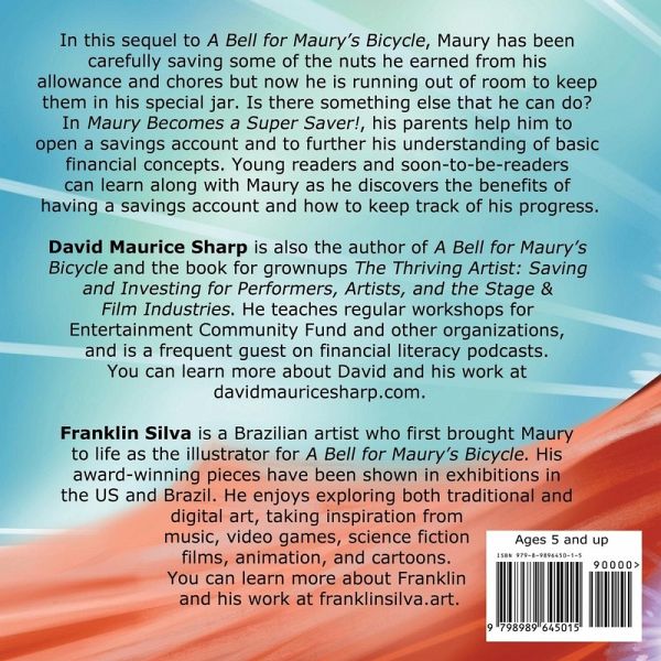 In this sequel to A Bell for Maury's Bicycle, Maury has been carefully saving some of the nuts he earned from his allowance and chores but now he is running out of room to keep them in his special jar. Is there something else that he can do? In Maury Becomes a Super Saver!, his parents help him to open a savings account and to further his understanding of basic financial concepts. Young readers and soon-to-be-readers can learn along with Maury as he discovers the benefits of having a savings account and how to keep track of his progress. Maury Becomes a Super Saver! became a B.R.A.G. Medallion Honoree in 2025.