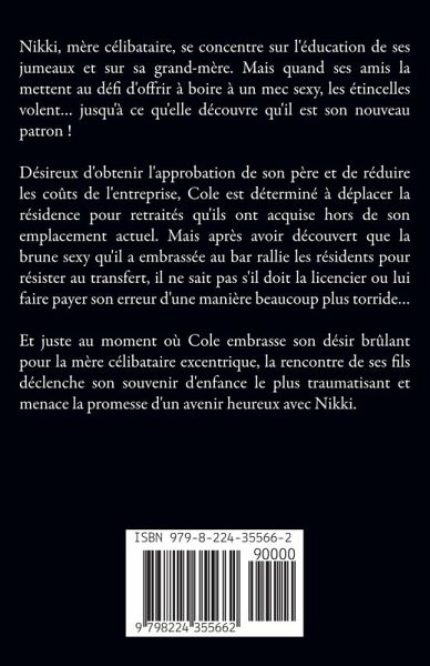Nikki, mère célibataire, se concentre sur l'éducation de ses jumeaux et sur sa grand-mère. Mais quand ses amis la mettent au défi d'offrir à boire à un mec sexy, les étincelles volent... jusqu'à ce qu'elle découvre qu'il est son nouveau patron ! Désireux d'obtenir l'approbation de son père et de réduire les coûts de l'entreprise, Cole est déterminé à déplacer la résidence pour retraités qu'ils ont acquise hors de son emplacement actuel. Mais après avoir découvert que la brune sexy qu'il a embrassée au bar rallie les résidents pour résister au transfert, il ne sait pas s'il doit la licencier ou lui faire payer son erreur d'une manière beaucoup plus torride... Et juste au moment où Cole embrasse son désir brûlant pour la mère célibataire excentrique, la rencontre de ses fils déclenche son souvenir d'enfance le plus traumatisant et menace la promesse d'un avenir heureux avec Nikki.