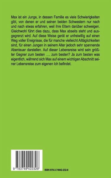 Max ist ein Junge, in dessen Familie es viele Schwierigkeiten gibt, von denen er und seinen beiden Schwestern nur nach und nach etwas erfahren, weil ihre Eltern darüber schweigen. Gleichwohl führt dies dazu, dass Max abseits steht und ausgegrenzt wird. Auf diese Weise gerät er unfreiwillig auf einen Weg voller Ereignisse, die für manche vielleicht Alltäglichkeiten sind, für einen Jungen in seinem Alter jedoch sehr spannende Abenteuer darstellen. Auf dieser Lebensreise wird sein größter Gegner zum besten - zum besten? Ja zum besten was eigentlich, während sich Max sich auf einem wichtigen Abschnitt seiner Lebensreise zum eigenen Ich befindet.…mehr