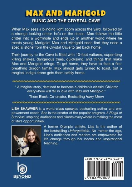 A dog named Max is after a strange critter and follows him into a wormhole that zooms him to an even stranger world where he meets a young girl named Marigold and all three set off on a dangerous quest in search of magic stones that can get Max and Marigold back home. When Max sees a blinding light zoom across the yard, followed by a strange looking critter, he's on the chase. Max follows the little critter into a wormhole and ends up in another world where he meets a young girl named Marigold who also traveled through the wormhole. It's up to Max, Marigold, and Runic (the critter Max chased) to get Max and Marigold back home. To do this, they need a special crystal from the cavern of stones. Their journey to the cavern is filled with 10-foot vultures, groppers (super-long killing snakes), killing trees, quicksand, and other things that make Max and Marigold cringe. They rely on each other to finally find the crystal, only to lose it in a battle with the vultures. To get home, Max and Marigold have to face Runic's fire-breathing dragon family. Runic's oldest brother wants to turn Max to toast, but Runic's mother senses the friendship they developed. She gives Max and Marigold a magical indigo stone that will get them home and allow them to come back whenever they want.