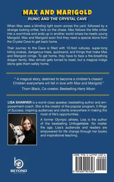 A dog named Max is after a strange critter and follows him into a wormhole that zooms him to an even stranger world where he meets a young girl named Marigold and all three set off on a dangerous quest in search of magic stones that can get Max and Marigold back home. When Max sees a blinding light zoom across the yard, followed by a strange looking critter, he's on the chase. Max follows the little critter into a wormhole and ends up in another world where he meets a young girl named Marigold who also traveled through the wormhole. It's up to Max, Marigold, and Runic (the critter Max chased) to get Max and Marigold back home. To do this, they need a special crystal from the cavern of stones. Their journey to the cavern is filled with 10-foot vultures, groppers (super-long killing snakes), killing trees, quicksand, and other things that make Max and Marigold cringe. They rely on each other to finally find the crystal, only to lose it in a battle with the vultures. To get home, Max and Marigold have to face Runic's fire-breathing dragon family. Runic's oldest brother wants to turn Max to toast, but Runic's mother senses the friendship they developed. She gives Max and Marigold a magical indigo stone that will get them home and allow them to come back whenever they want.